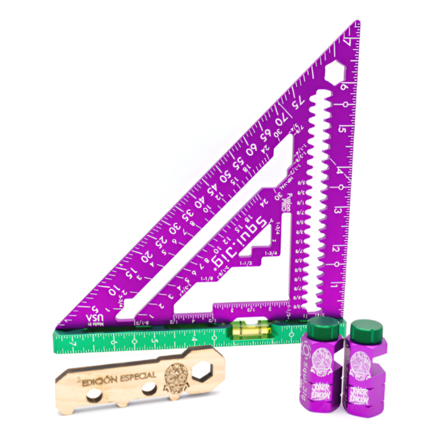 This Latino Builders Show Edición Pro Set brings together two essential layout tools created through the collaboration between Squi Jig and the Latino Builders Show. The colors for this Edición were chosen to represent professionalism, excellence, and pride within the Latino construction community, featuring the clean black frame and bold gold accents that define this special release. Precision machined for speed, accuracy, and real jobsite performance, this set is built for professionals who demand quality and representation.