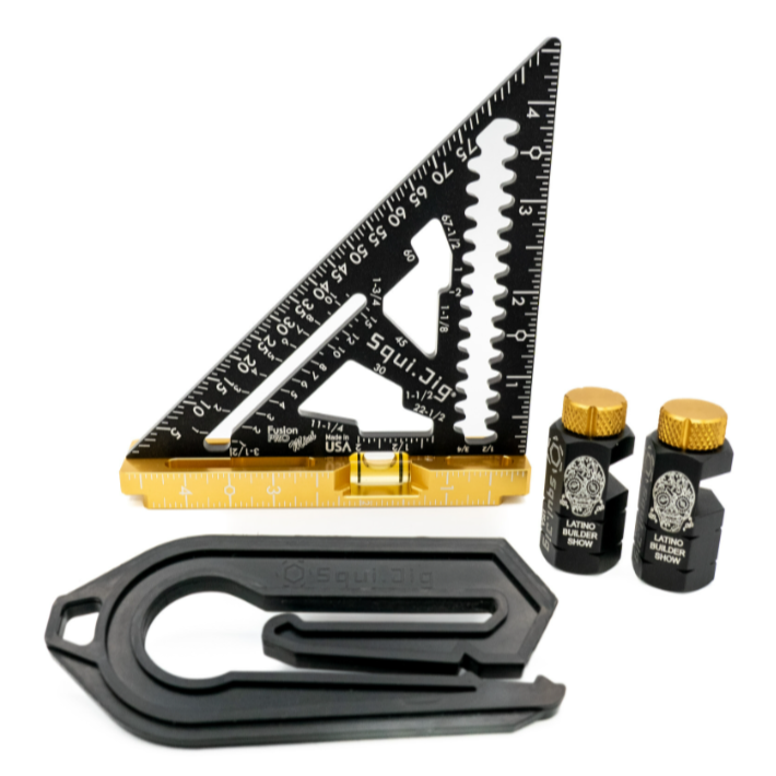 This limited edition Squi Jig 7.5" Fusion Pro Square was created as an official collaboration between Squi Jig and the Latino Builders Show to honor the strength, skill, and impact of the Latino construction community.