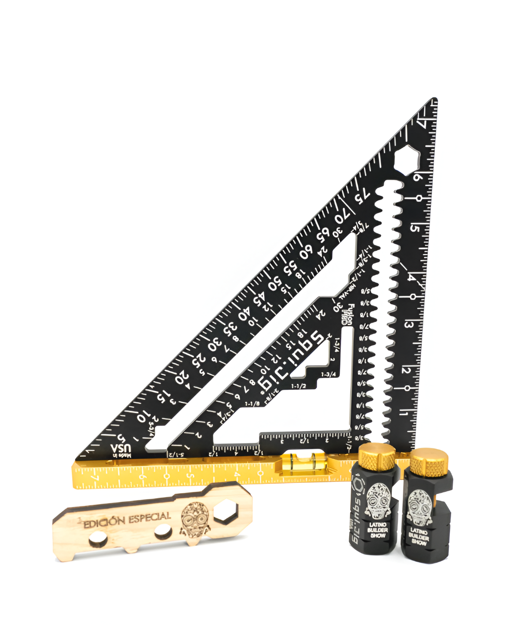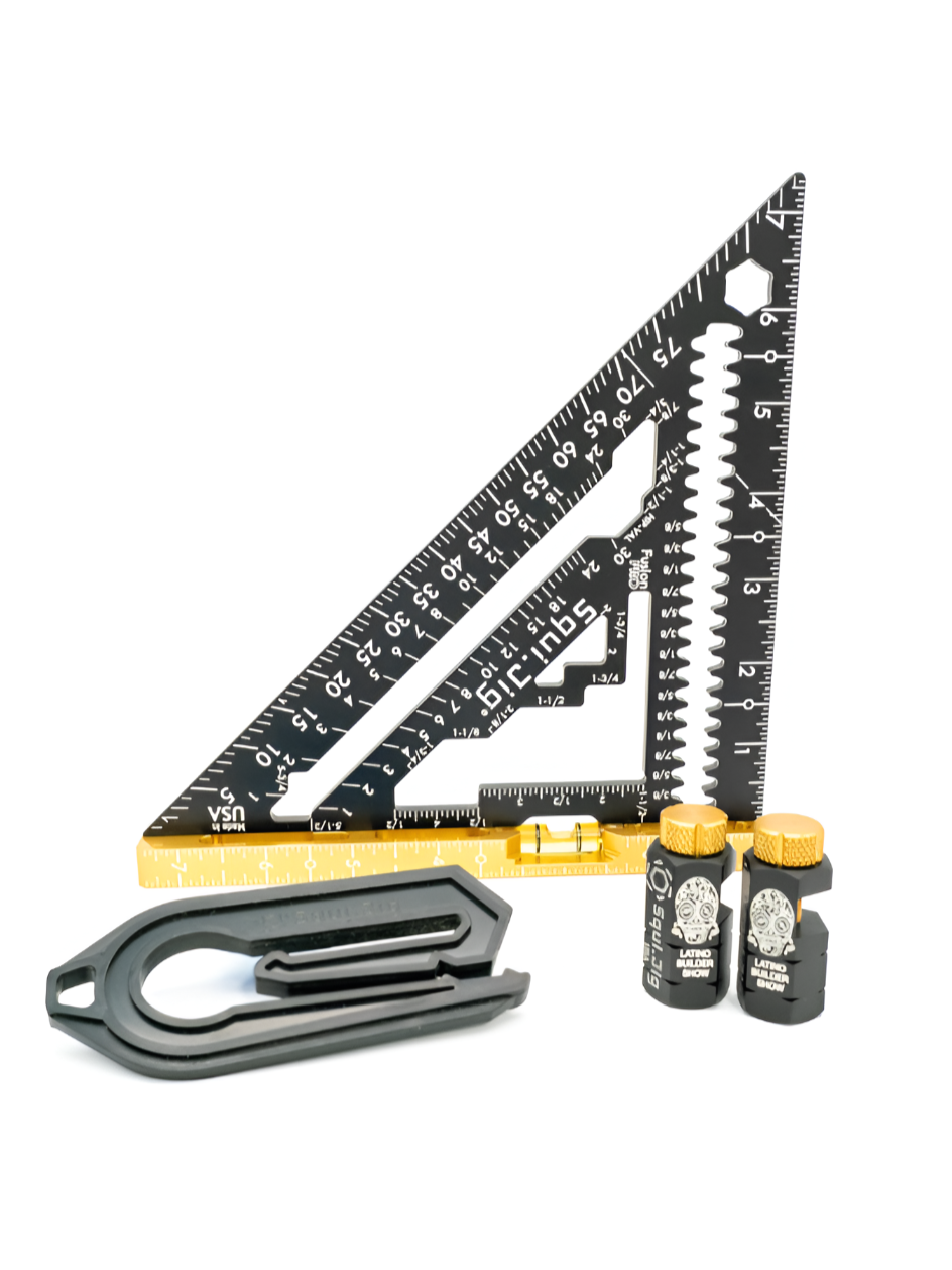 This limited edition 4.5" Fusion Mini Pro Square is part of the official Latino Builders Show Edición, created to represent excellence, craftsmanship, and pride within the Latino construction community. Designed for builders who need a compact, accurate, and durable layout tool, this mini square is finished in the signature black and gold colorway chosen for the Latino Builders Show.